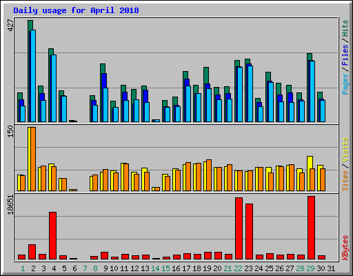 | Day | Hits | Files | Pages | Visits | Sites | KBytes | ||||||